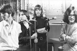 played drums, and Scot played bass guitar. Everyone sang except for Frank