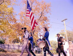 a parade led by the three classic revolutionary war characters